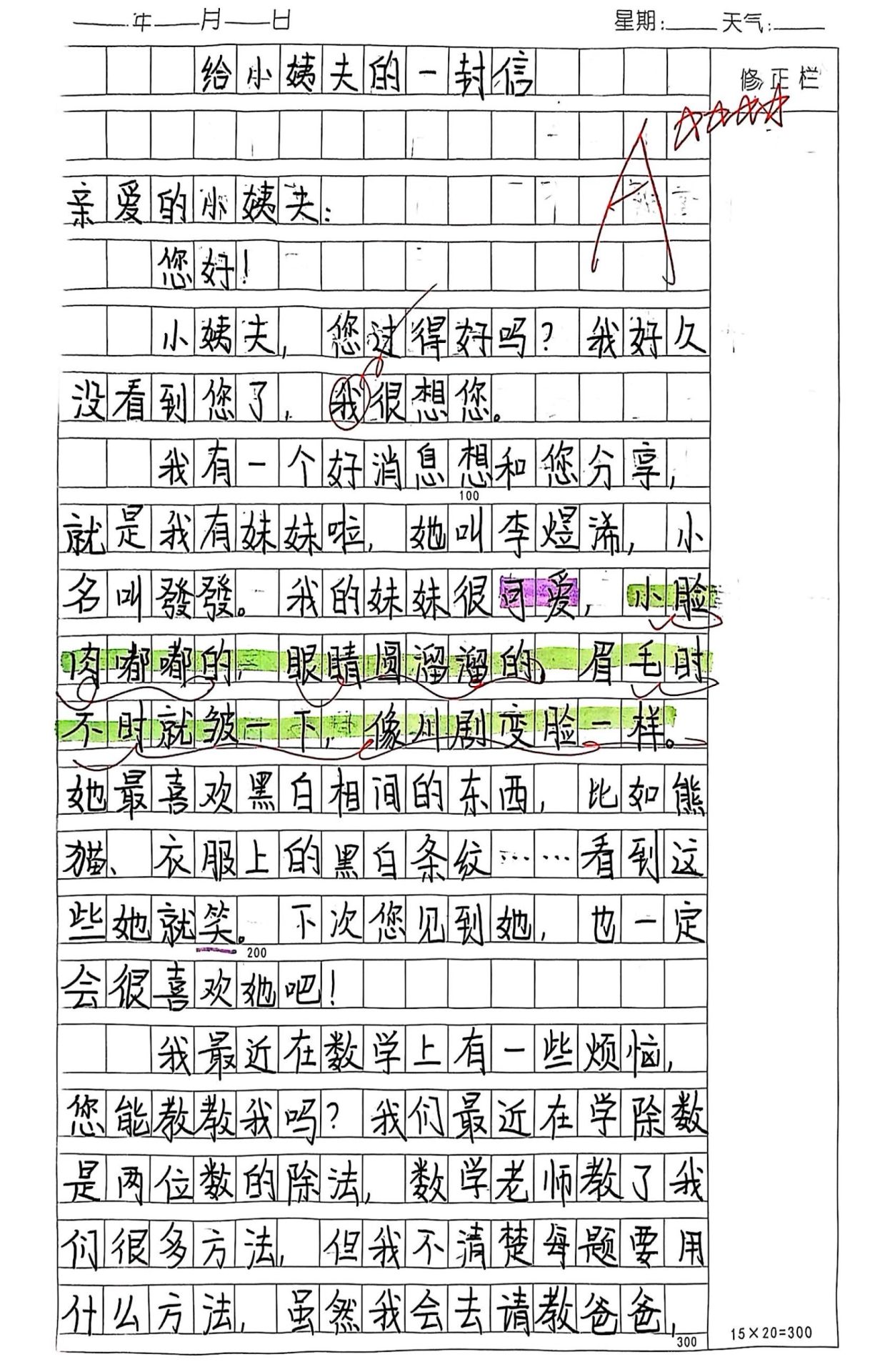 时间一晃,我已经是四年级的小学生了,但是我好久没看到你的笑脸了,也好久没吃到您做的饭菜了。还记得那年疫情,我天天都住在您家。你每天都变着花样给我们做好吃的,我最爱吃您做的面条,现在想来都流口水呢。妈妈只会扎马尾辫,所以我总是羡慕小伙伴。在您那,就天天变着花样给我扎,可好看了。每当我无聊时,您就让我到菜园里抓一把青菜去喂小鸡,每当这时,我都很开心,欢欢喜喜的去喂小鸡。这时,妈妈总会觉得这菜是给我们吃的,我是给小鸡吃的。可您却觉得只要我开心就好。想到这些往事,我真想您。我巴不得现在就去到您那里,请问您好,欢迎我们今年去您家吗?