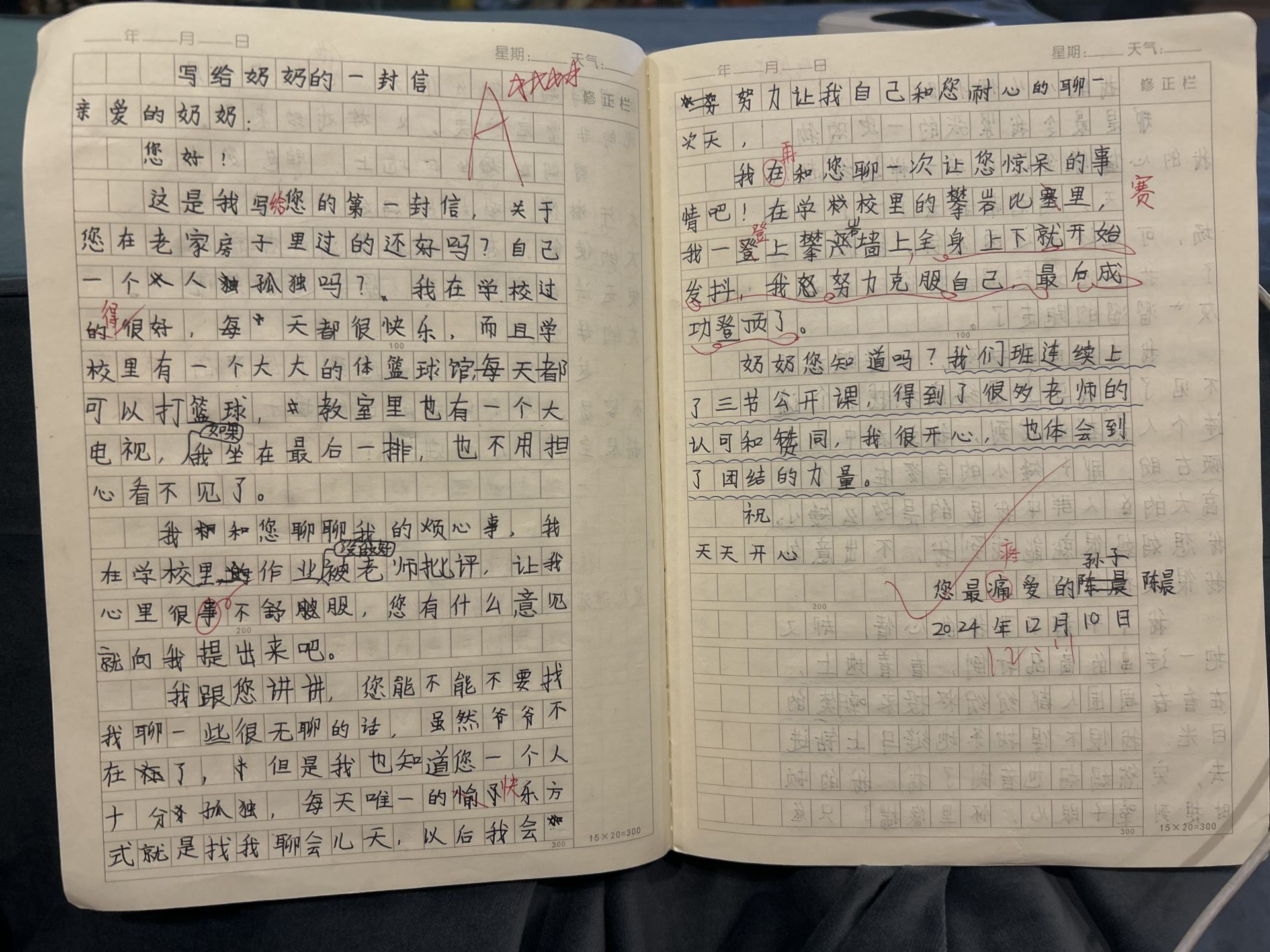 这是我写给您的第一封信,关于您在老家的房子里过得还好吗?自己一个人孤独吗?我在学校过得很好,每天都很快乐,而且学校里有一个大大的篮球馆,每天都可以打篮球,教室里也有一个大电视,如果我坐在最后一排也不用担心看不见。