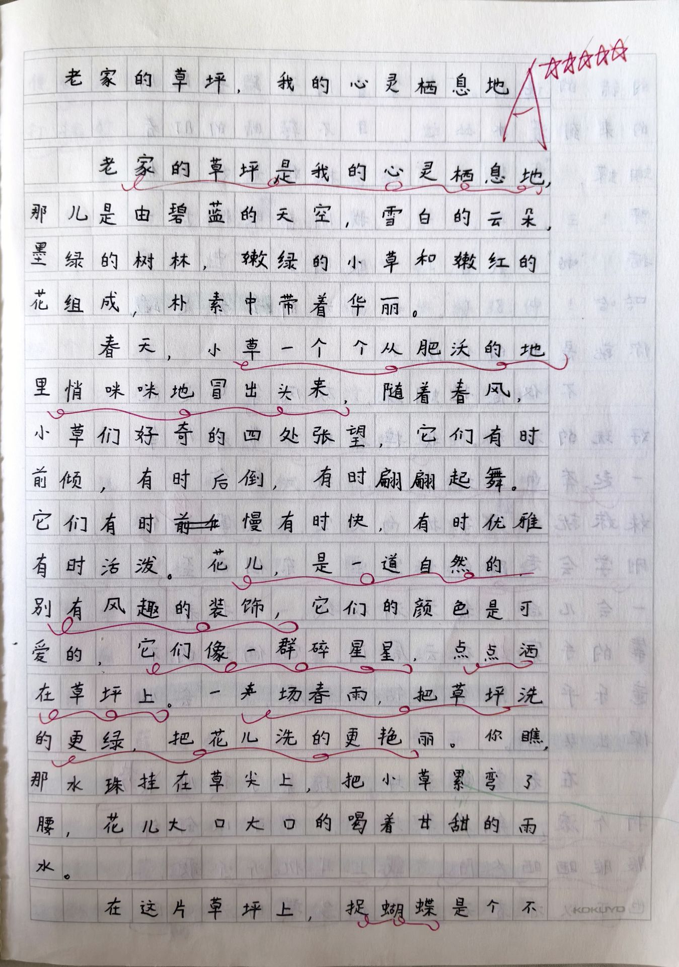 老家的草坪是我的心灵栖息地,那儿是由碧蓝的天空,雪白的云朵,墨绿的树林,嫩绿的小草和嫩红的花组成,朴素中带着华丽。