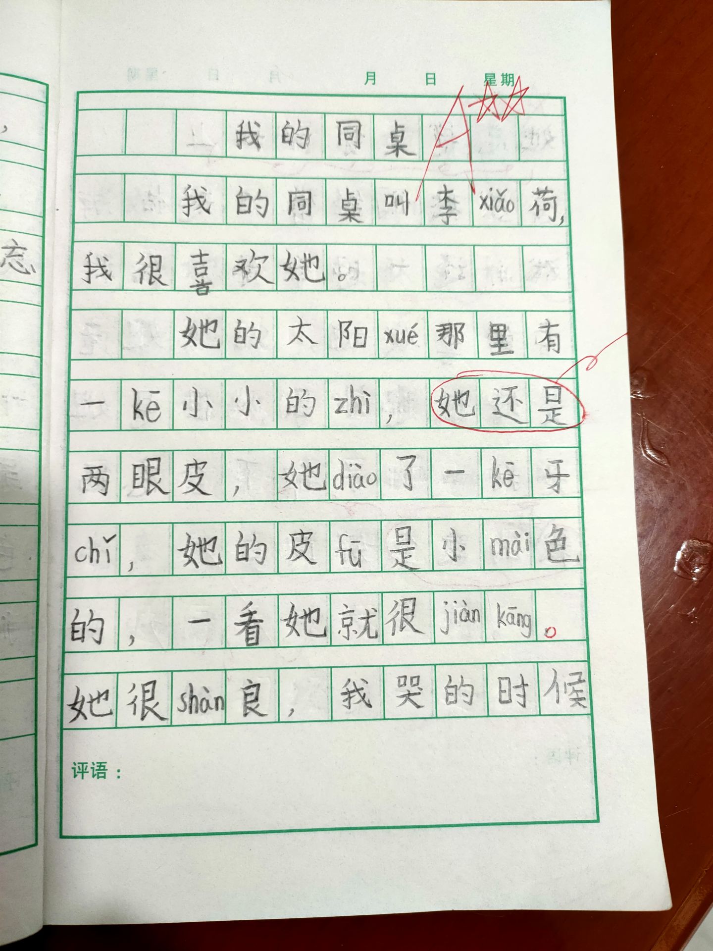 我的同桌叫李筱荷,我很喜欢她。