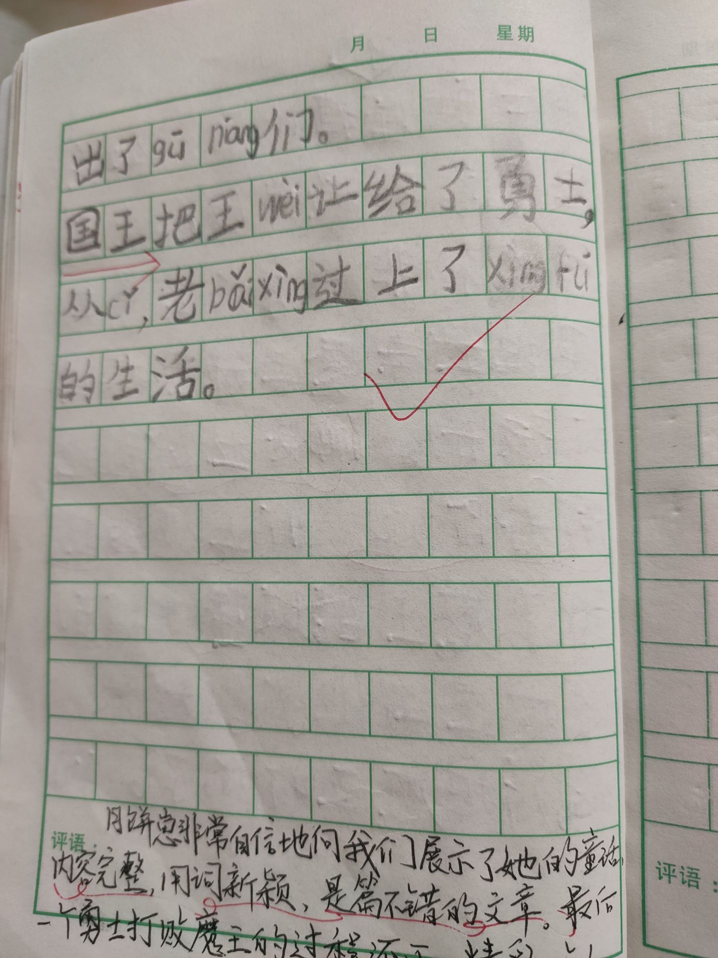 在一片沙漠里,有一座金字塔,从前有一位国王被困在了里面。有一个军团知道了这件事,他们商量怎样救出国王。有人说:“驾驶飞机去轰炸。”有人反驳:“飞机不能飞那么远。”我说:“挖地道,挖到金字塔下面,再去找国王,把国王救出金字塔。”我的办法得到了大家的赞赏。于是大家按着我说的办法开始了行动。我们挖着地道,挖呀挖呀……终于挖到了金字塔下面,我们一起找寻着国王,我们找呀找呀……突然我发现了一个机关。我大声地叫了一声:“趴下!”大家都趴下了。机关是一个大锤子,打倒了一位勇士,他被砸晕了。我们拍拍他的肩膀,他没有回应,我们只好放弃这位勇士,继续寻找国王。我们找呀找呀……终于找到了国王!我们欢呼着:“胜利!”救出了国王。我们都得到了国王的礼物,今天我们都很有收获,今天真美好啊!