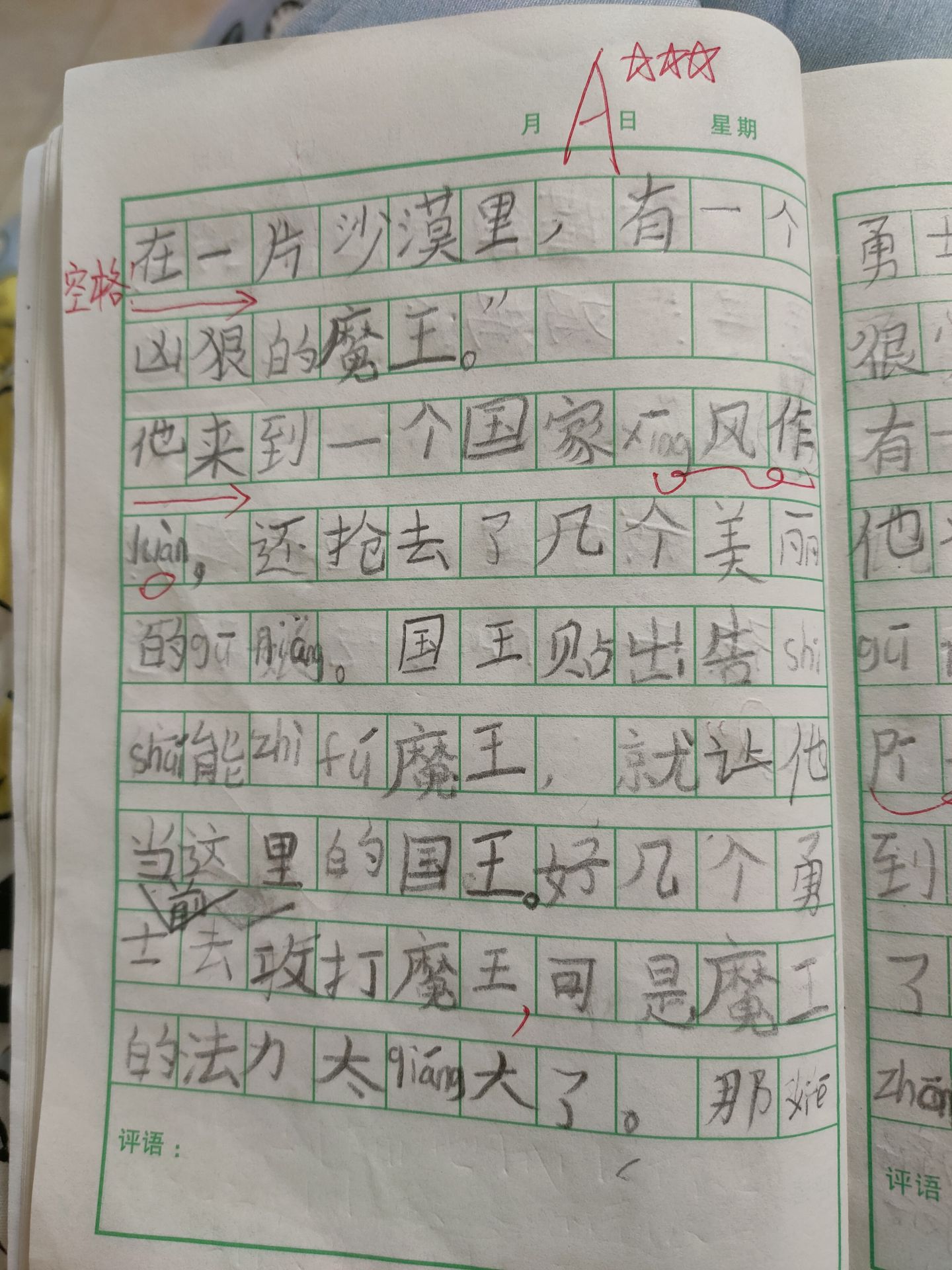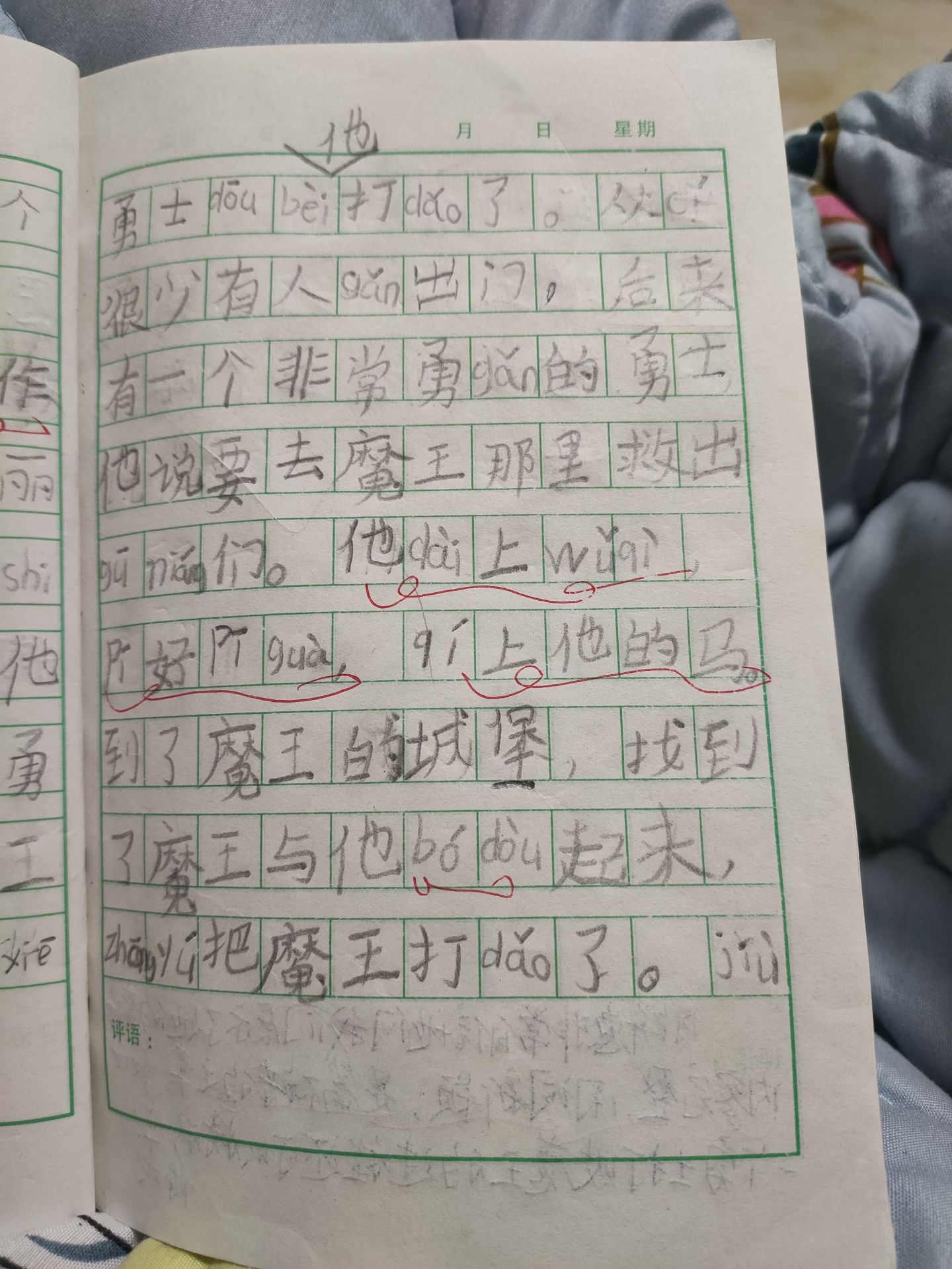 他来到一个国家兴风作浪,还抢去了几个美丽的姑娘。国王贴出告示谁能制服魔王,就让他当这里的国王。好几个勇士前去攻打魔王,可是魔王的法力太强大了。那些勇士都被他打倒了。从此很少有人敢出门。后来有一个非常勇敢的勇士,他说要去魔王那里救助姑娘们。他带上武器, 批好披挂,骑上他的马。到了魔王的城堡,找到了魔王与他搏斗起来,终于把魔王打倒了。救出了姑娘们。